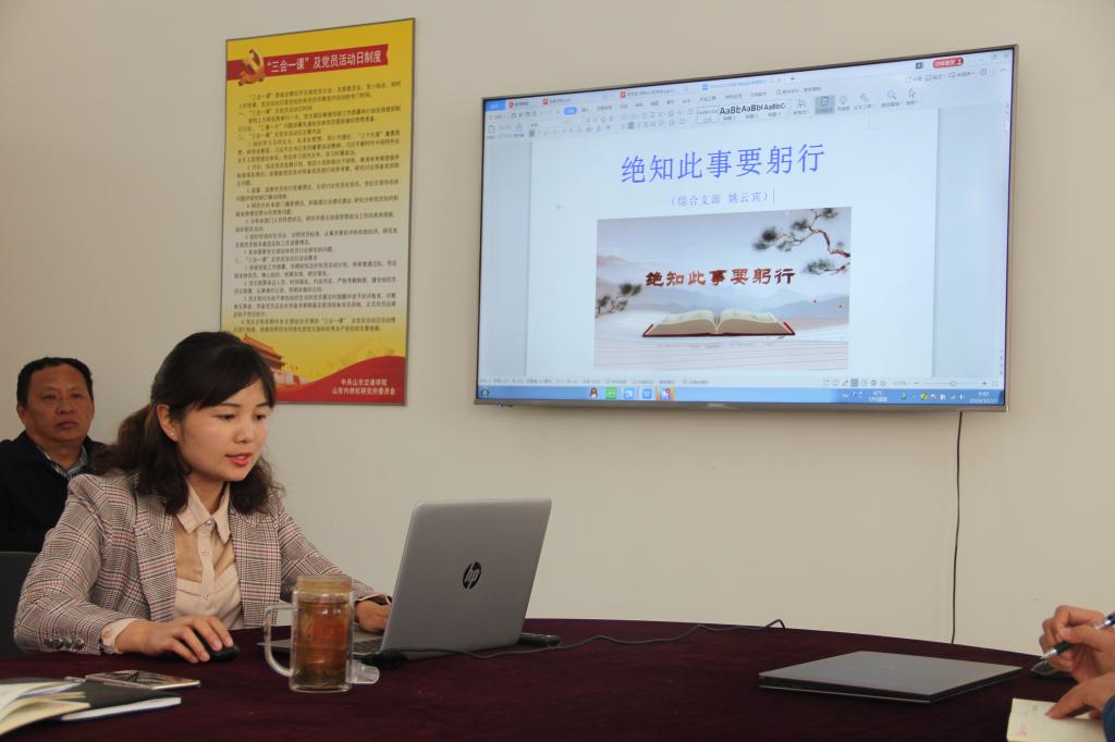 会议分别由潘世忠讲授题为《学党史 明初心 知使命》主题党课,综合支部书记姚云宾讲授题为《绝知此事要躬行 奋力开创新时代》专题党课,科研支部书记王明杰讲授题为《不忘初心 牢记使命 学习十九大报告 贯彻落实十九大精神》专题党课。